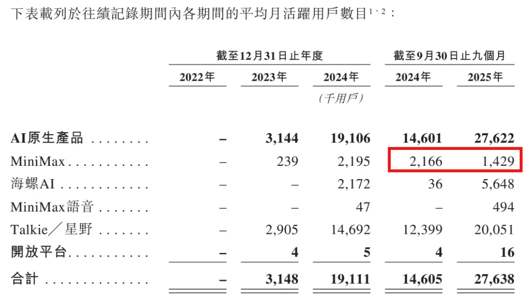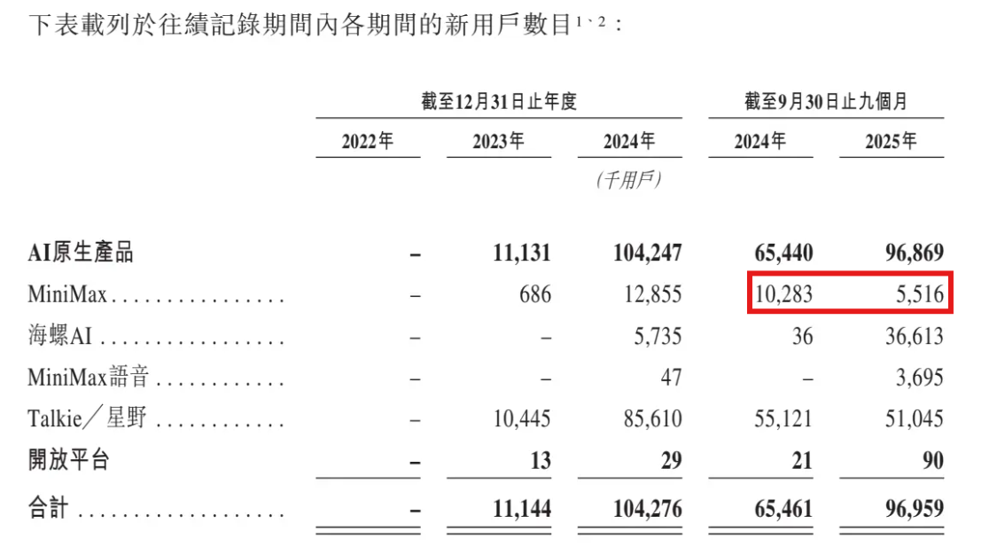 MiniMax 2023、2024年的营销费用高达$23M和$87M,分别是当年收入的6.5倍和2.9倍。依旧是互联网时代烧钱买流量的思路。但问题是,买来的流量有没有形成足够强的网络效应?2025年前9个月,在大幅降低广告投放之后,MiniMax的平均MAU较同期下降了34%,新用户数更是跌了5成,这个成绩恐怕是很难让人满意的。